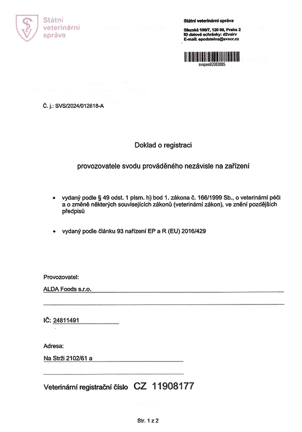 Doklad o registraci provozovatele svodu prováděného nezávisle na zařízení