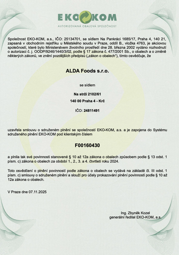 Doklad o sdruženém plnění se společností EKO-KOM, a.s.