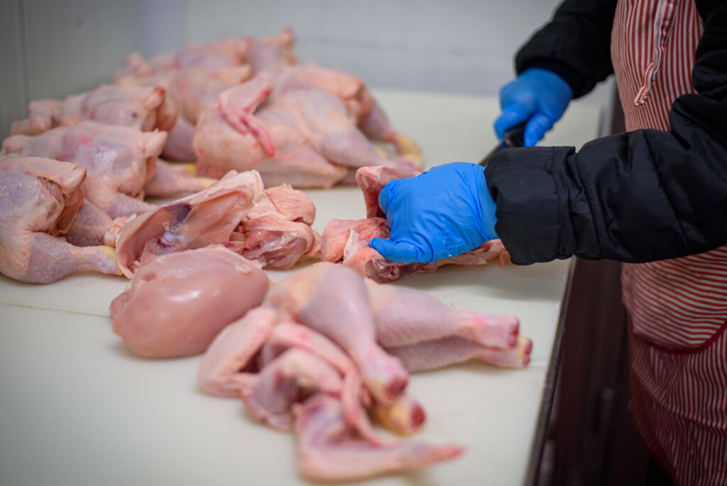 Vlastní bourárna kuřecího masa, kde denně zpracováváme čerstvá kuřata a připravujeme kuřecí díly podle požadavků zákazníků.